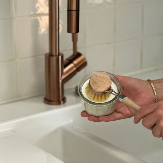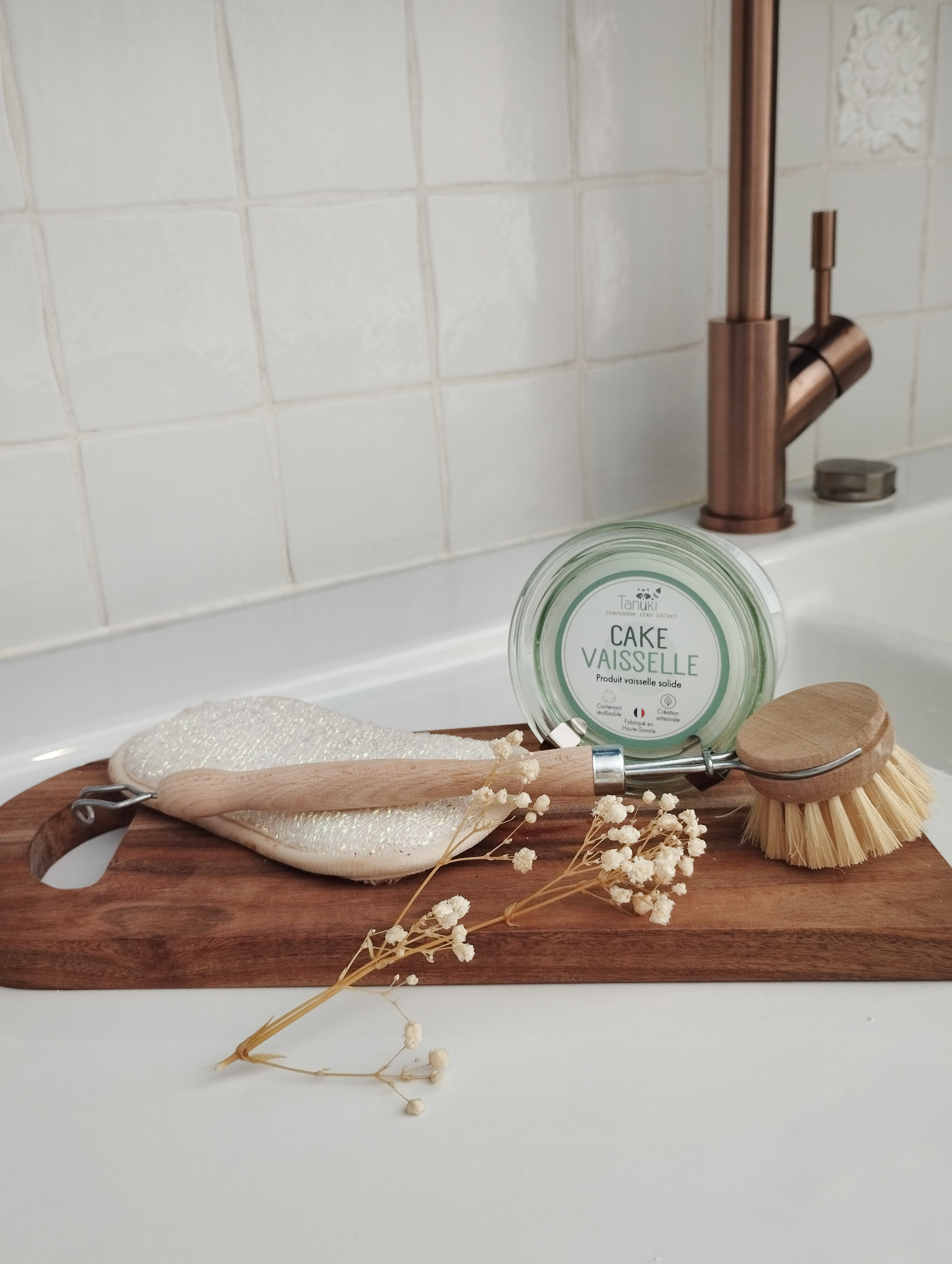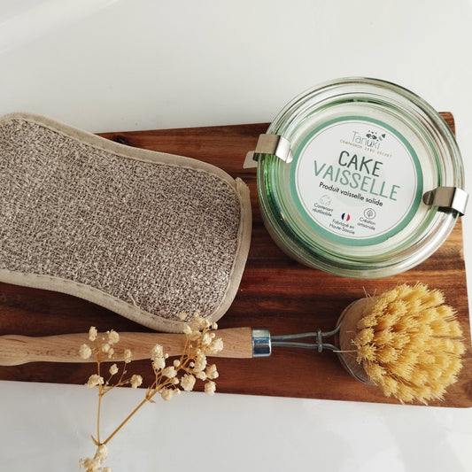 Le pack ménage zéro déchet : cake vaisselle + brosse vaisselle + éponge lavable